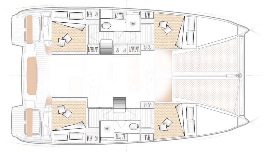Бак для воды: 300 л 4 двухместные каюты с двуспальными кроватями + 1 носовая для шеф-повара 2 WC с душем Кондиционер; опреснитель воды; генератор |